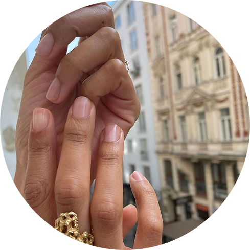 Аккуратная обработка ногтей и кутикулы с уходом за кожей рук. Подчёркивает естественную красоту ногтей.